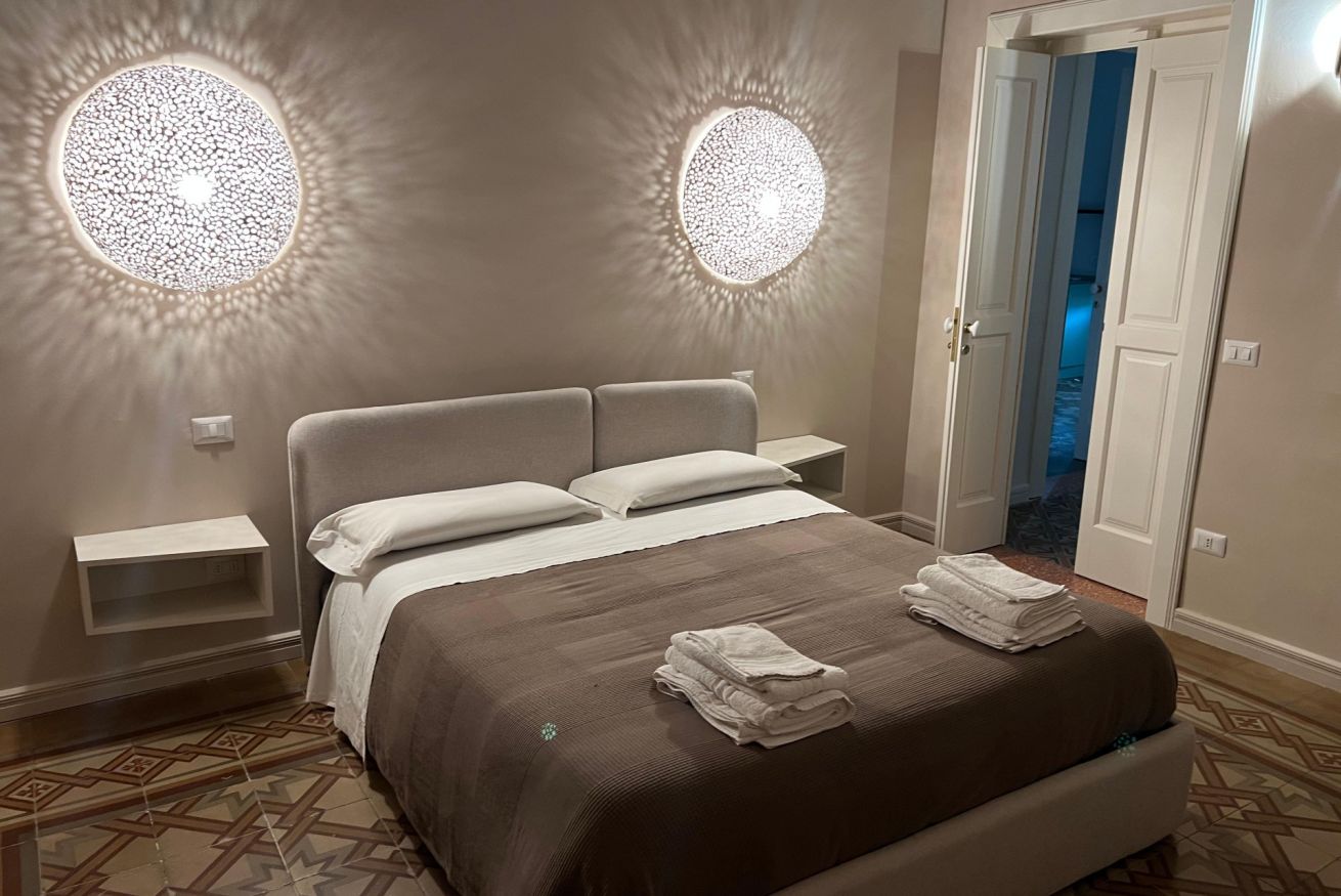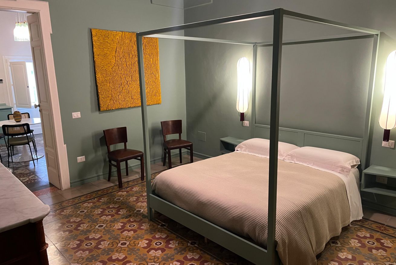 A primo piano sono presenti due suite e tre camere da letto, tutte dotate di bagno privato. I terrazzi esterni, affacciati sul frutteto privato del palazzo, sono il luogo ideale per una colazione rilassante e suggestiva.